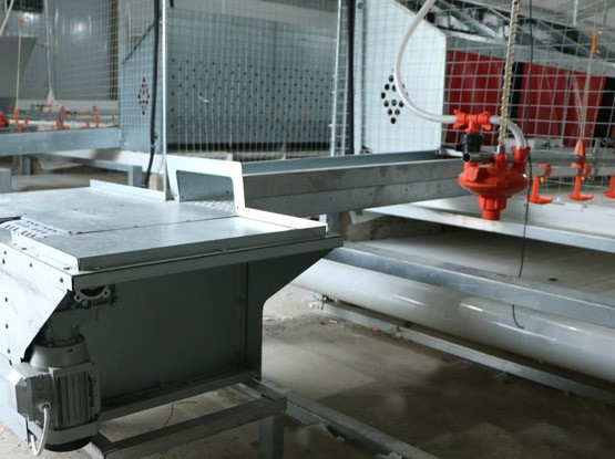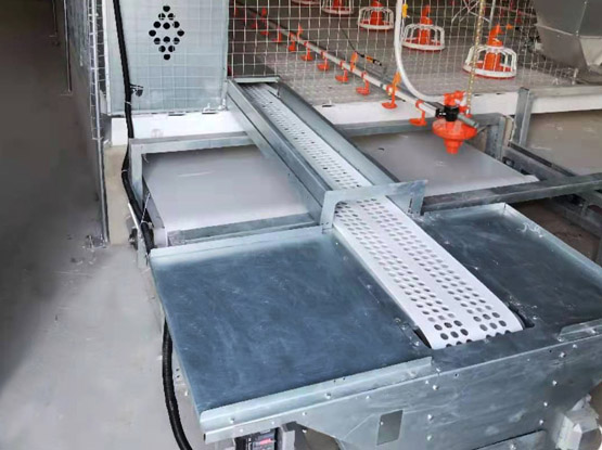 Пологий наклон в задней части ящика для яиц позволяет яйцам плавно скатиться на ленточный конвейер для яиц.